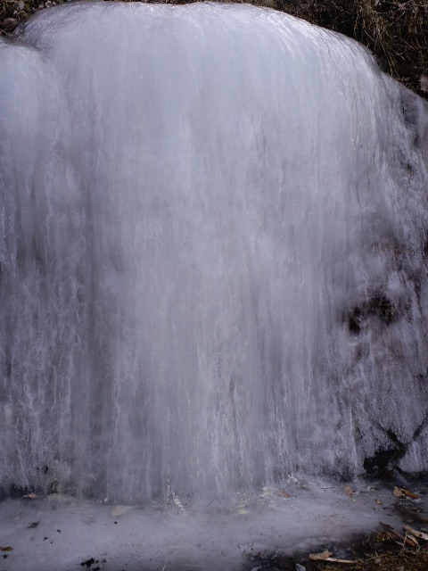 2011年2月23日 2011/02/08、氷塊? 現場へ向かう途中の一コマです。 湧き水が凍って、固まりになっています。 今年は一月が本当に寒かったので、この様な氷塊が結構至るところでみられます。 八ヶ岳高原大橋からも、もっと大きなやつが、遠目に確認できます。 写真を撮ったのは2/8ですが、2/23現在でも、まだ溶けていません。