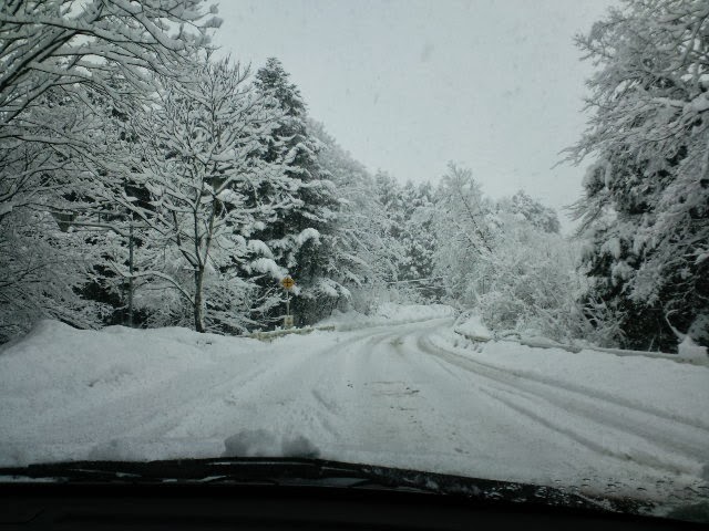 2014年3月5日 また雪! またまたの雪です。9時頃で20cmぐらいの積雪でしょうか? 今回の雪は水分が多いので、樹木や電線への着雪が多いです。倒木など無ければよいのですが・・・。 写真はレインボーラインです。