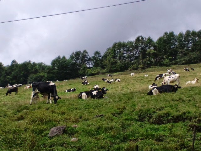 2014年9月3日 やっと晴れて牛もホッとした? 気がついたら、あっという間に8月が終わって9月になってしまいました。お盆休み明けから続いた雨がやっと一休み、ホント、長かったなぁ~。 しかし、このまま夏は終わってしまうのでしょうか? 後半、ずっと肩すかしをくらっていたので、9月に少し盛り返して欲しいですね。夕方にデッキで飲むビールをもう一回ぐらい楽しみたい。 写真はまきば公園の牛さん達です。ずいぶんと道路の近くに来ていたので写真に納めてみました。