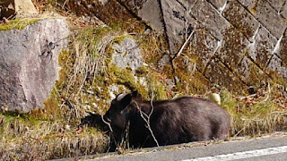 2015年12月1日 ニホンカモシカ 11/5(木)に友人たちと、再び美ヶ原へ行きました。紅葉のピークは過ぎていましたが、とても暖かい一日で、たいへん気持ちよかったです。 美ヶ原から下ること約5分、なんと、ニホンカモシカに出くわしました。道路の側溝に入って、何か物色しているようでした。車の中から写真を撮ったのですが、残念ながらカメラ目線はいただけませんでした。 下の写真は美ヶ原から松本方面を撮ったものです。