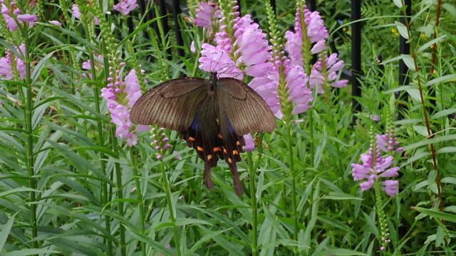 2019年8月30日 アゲハチョウ 2019/8/29(木) 撮影 昨日の休日、庭に犬猫を出していたら、きれいなアゲハチョウが遊びに来てくれました。 正式な名前はわかりませんが、大きくて美しい蝶でした。 猫のムギは目で追ってはいましたが、飛びつきはしませんでした。 もう少しほって置いたら飛びついたのでしょうか? 羽根が大きくて立派なので、少しビビッていたのでしょう。