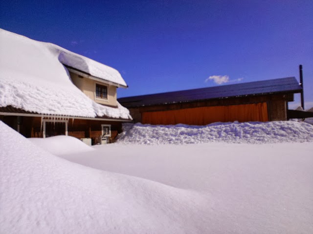 夕方までの除雪で、プレハブ倉庫までのアプローチを残すのみとなりました。あと、半日で終わるかなぁ~。